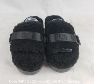 Lot #0142: UGG Black Fluffita Sandals S:8