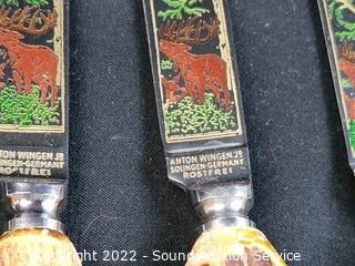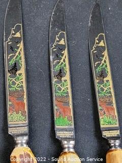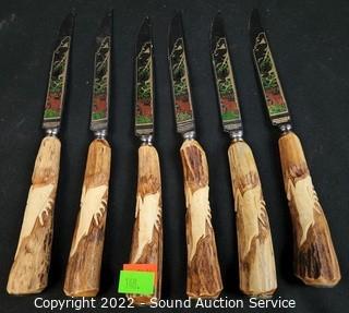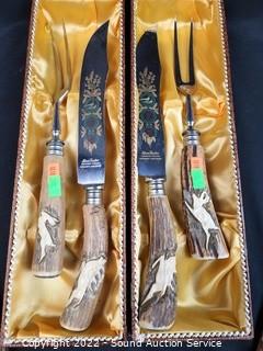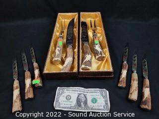 Lot #0148: Carved Antler Handle 2 Carving Sets & Steak Knives