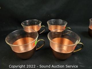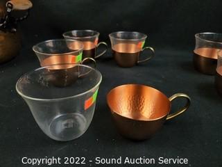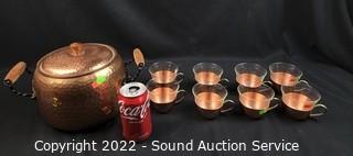 Lot #0049: Hammered Copper Pot w/8 Cups w/Glass Inserts