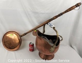 Lot #0054: Vintage Copper Coal Scuttle & Coal Bed Warming Pan
