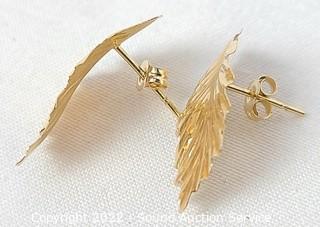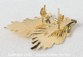 Lot #0151: 14k Gold Leaf Earrings