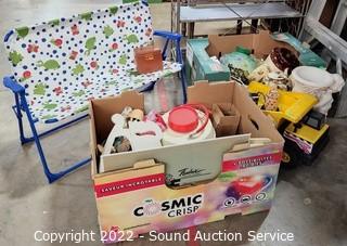 352 Lots Including: Teal Moon Cool Cruiser Tricycle w/Baskets, Stools, Sofas, Dress Forms, Retail Mannequin, Dark Stained Hall Tree Coat/Hat/Cane Rack, Beautiful Locking Mirrored Single Drawer Cabinet, Pennsylvania House Cherry Buffet, Cherry La-Z-Boy Kinkaid China Hutch, Natural Stained Pine 2pc Open Hutch, Oak Queen Poster Bed w/Mattress, Live Potted Plants, Vtg. George J. Michaelsen Birdseye Maple Dressers, Samsung 32" LED HD Smart TV, Vintage White Treadle Sewing Machine w/Cabinet, Vtg. Asian Black Lacquer Chest, Vtg. Asian Black & Gold Painted Corner Chest, Nice Hermle Pendulum Mantle Clock, Vtg. Birds Eye Maple Bustle Seat Vanity Bench, American Drew Bedroom Set, Various Artwork, Lamiglas & Other Fishing Rods, Reels, Fine China/Porcelain, Nikon FG Camera w/Lenses, Sewing Machines & Supplies, Tools, Dolls, Kitchen/Cookware, Footwear, Books, Home Decor, Collectible Coins, Bed/Bath & More!!!