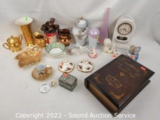 352 Lots Including: Teal Moon Cool Cruiser Tricycle w/Baskets, Stools, Sofas, Dress Forms, Retail Mannequin, Dark Stained Hall Tree Coat/Hat/Cane Rack, Beautiful Locking Mirrored Single Drawer Cabinet, Pennsylvania House Cherry Buffet, Cherry La-Z-Boy Kinkaid China Hutch, Natural Stained Pine 2pc Open Hutch, Oak Queen Poster Bed w/Mattress, Live Potted Plants, Vtg. George J. Michaelsen Birdseye Maple Dressers, Samsung 32" LED HD Smart TV, Vintage White Treadle Sewing Machine w/Cabinet, Vtg. Asian Black Lacquer Chest, Vtg. Asian Black & Gold Painted Corner Chest, Nice Hermle Pendulum Mantle Clock, Vtg. Birds Eye Maple Bustle Seat Vanity Bench, American Drew Bedroom Set, Various Artwork, Lamiglas & Other Fishing Rods, Reels, Fine China/Porcelain, Nikon FG Camera w/Lenses, Sewing Machines & Supplies, Tools, Dolls, Kitchen/Cookware, Footwear, Books, Home Decor, Collectible Coins, Bed/Bath & More!!!