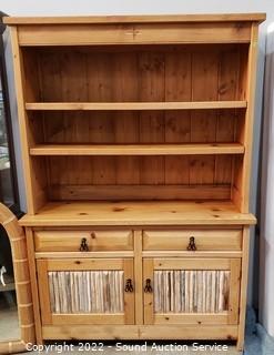 Lot #0019: Nice Natural Stained Pine 2pc Open Hutch