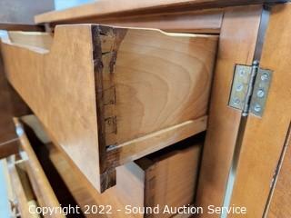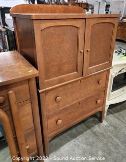 352 Lots Including: Teal Moon Cool Cruiser Tricycle w/Baskets, Stools, Sofas, Dress Forms, Retail Mannequin, Dark Stained Hall Tree Coat/Hat/Cane Rack, Beautiful Locking Mirrored Single Drawer Cabinet, Pennsylvania House Cherry Buffet, Cherry La-Z-Boy Kinkaid China Hutch, Natural Stained Pine 2pc Open Hutch, Oak Queen Poster Bed w/Mattress, Live Potted Plants, Vtg. George J. Michaelsen Birdseye Maple Dressers, Samsung 32" LED HD Smart TV, Vintage White Treadle Sewing Machine w/Cabinet, Vtg. Asian Black Lacquer Chest, Vtg. Asian Black & Gold Painted Corner Chest, Nice Hermle Pendulum Mantle Clock, Vtg. Birds Eye Maple Bustle Seat Vanity Bench, American Drew Bedroom Set, Various Artwork, Lamiglas & Other Fishing Rods, Reels, Fine China/Porcelain, Nikon FG Camera w/Lenses, Sewing Machines & Supplies, Tools, Dolls, Kitchen/Cookware, Footwear, Books, Home Decor, Collectible Coins, Bed/Bath & More!!!