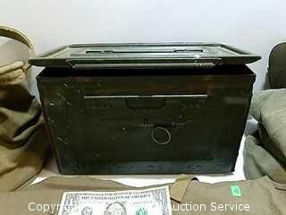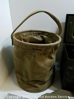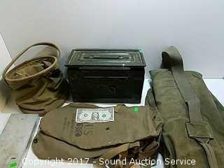 Lot #0028: Army Green Ammo Tin & Canvas Bags