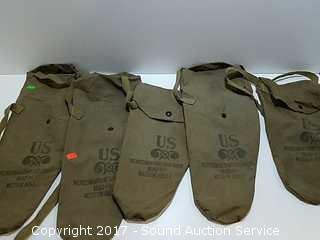 5 Gas Mask Bags, Canvas Container & Duffel Bag. Ammo tin is a 50 cal.