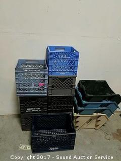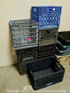 Lot #0253: Collection of Glass Bins & Milk Crates