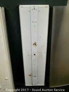 One of the light covers is cracked. Each holds 4 bulbs. Approx. 17" wide, 48" long, 3" deep.