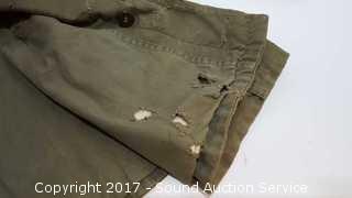 One is size long small, other does not have a tag. Do have some staining and some rips. One has Ranger patch & Communication Zone Europe patch.