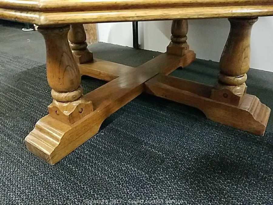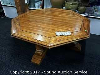 Lot #0197: Solid Oak Octagon Coffee Table w/Turned Legs
