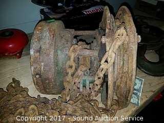 Lot #0158: Vtg. Yale Spur Geared Chain Block Hoist