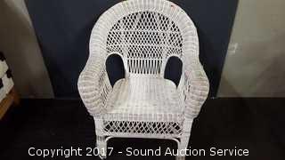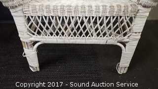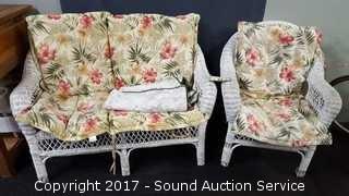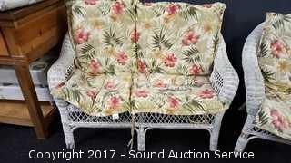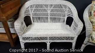 Lot #0310: White Wicker Patio Loveseat & Armchair