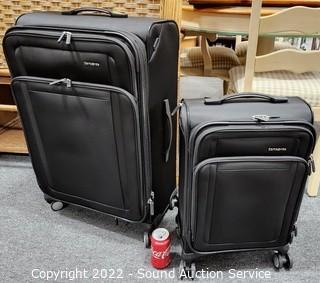 Lot #0025: 2pc Samsonite Black Soft-Side Spinner Luggage Set