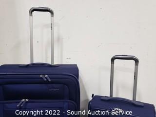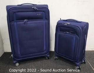 Lot #0106: 2pc Samsonite Blue Soft-Side Spinner Luggage Set