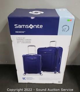 Lot #0232: 2pc Samsonite Blue Soft-Side Spinner Luggage Set