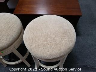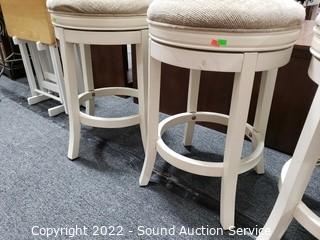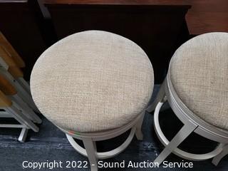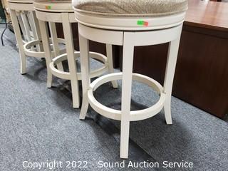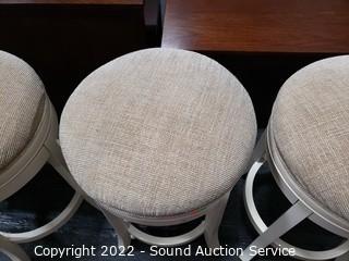 Lot #0007: 3 Ivory Upholstered Swivel Bar Stools