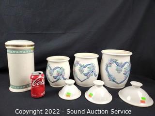 Lot #0160: 3 Signed Pottery Canisters & Canister w/Seashells