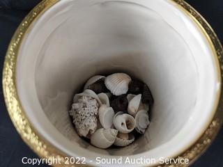 Lot Details: Canisters signed Judy Goodwin 9" to 12" tall overall. One full of seashells is Pottery Barn.