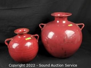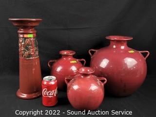Lot #0171: 4pc Decorative Maroon Ceramic Vases