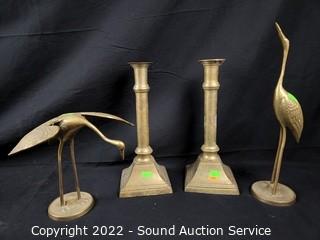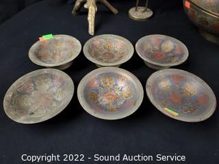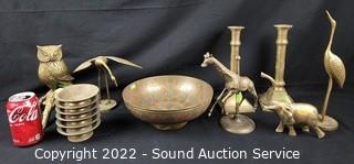 Lot #0179: 8 Etched Brass Bowls, Candleholders, Figures