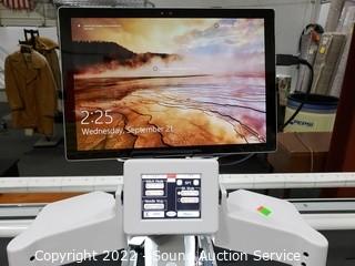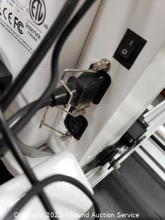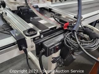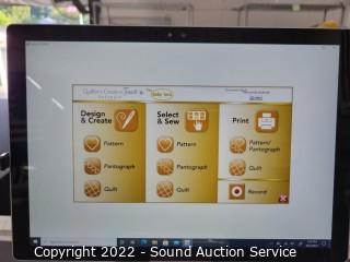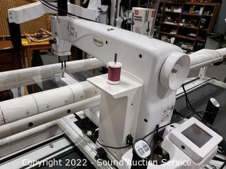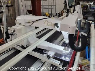 Lot Details: Works. Tablet has a fresh install Windows OS, comes with quilters creative touch software & manual. Lifetime stitch count of 1,588,222. Model BLCJ18-3, Serial #D15008846. As a long-arm machine, the Crown Jewel III, larger workspace allows you to stitch freely without worrying about limitations. Back and Front Handles Effortlessly control the motion of the Crown Jewel from either end of the machine with the comfort-grip handles. Options are right at your fingertips with push-button controls. Comes with a few accessories, plastic fabric quilt clips 3/8" & 1.5", Spool rack, PowerJC Power supply, micro-handles, Momentum software, 10ft frame. Overall 61" H x 10'8" L x 41" D.