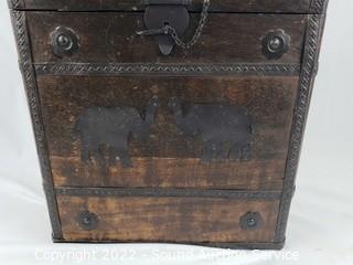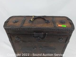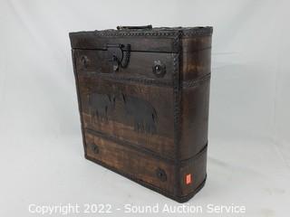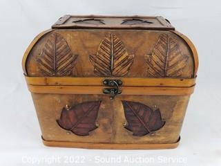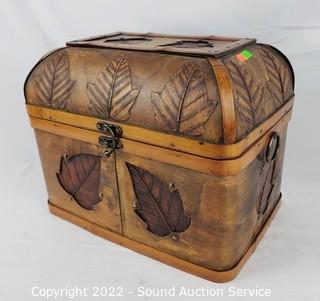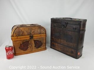 Lot #0123: Decorative 3 Bottle Wine Box & Bamboo Leaf Chest