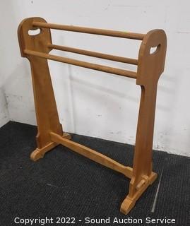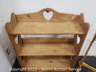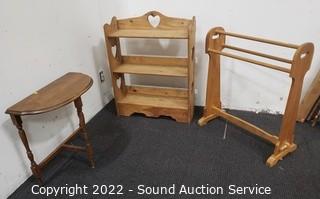Lot #0026: Half Round Hall Table, Pine Shelf & Quilt Rack