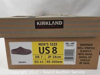 Lot #0042: Men's Kirkland Brown Shearling Slippers S:8