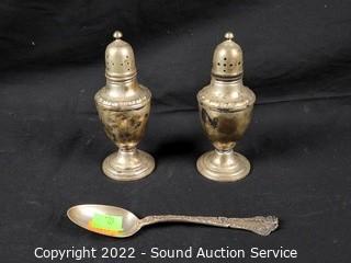 Lot #0062: Sterling Spoon & Weighted Silver Salt & Pepper