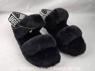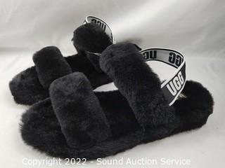 Lot #0041: Ugg "Oh Yeah" Fuzzy Black Slippers S:9