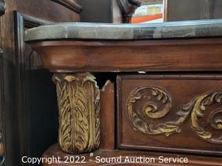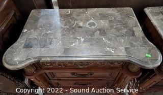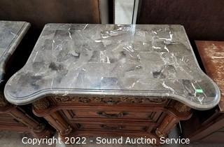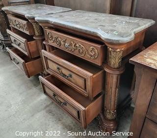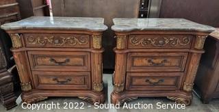Lot #0005: 2 McFerran Ornate Marble Top 3-Drawer Nightstands