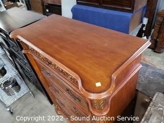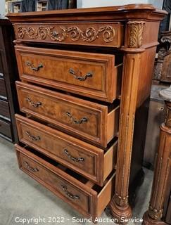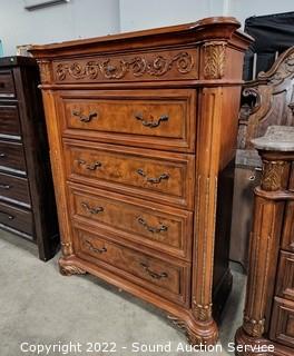 Lot #0004: McFerran Ornate 5-Drawer Highboy Dresser