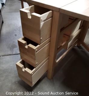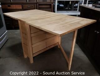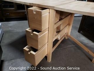 Lot #0073: Natural Wood Drop Leaf Task Table