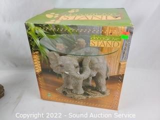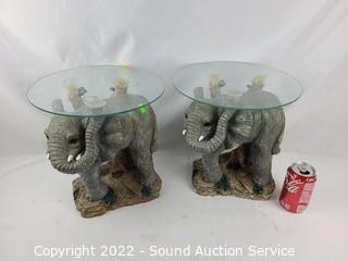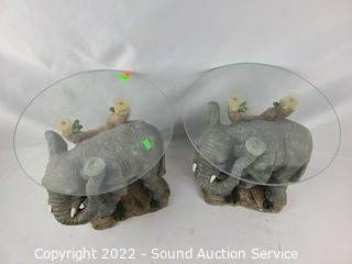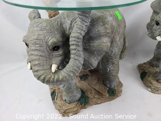 Lot #0236: 2 Glass Top Composite Decorative Elephant Stand