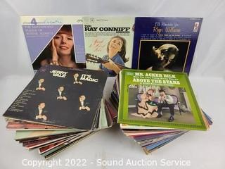 353 Lots including: Microfiber Power Reclining Sofa, Vtg. Oak Wash Station w/Pitcher & Basin, Thomas Kinkade "Summer Gate" A/P Canvas Print, Curio Cabinets, Hutch, Living Room Table Sets, Unique Signed Muller's Stone & Solid Brass Table, Vtg. Fisher Cabinet Stereo System, Kenmore 80 Series Clothes Dryer, Steel Organizer Rack w/35 Plastic Bins, Keller Solid Maple 2pc Hutch, 4 MCM Vinyl Seat Chairs, DVD/Blu-ray Movies, Fine Gold & Silver Jewelry, Vtg. Record Albums, Tools Hardware, Cookware, Table & Service Ware, Personal Hygiene Production, Blankets, Sheet Sets, Various Literature, Bose Wave Radio, Assorted Sewing Patterns/Kits/Fabric/Supplies, Holiday Decor, 1950's Casco "Starlet" Vanity Makeup Mirror, Home Improvement & More!!!