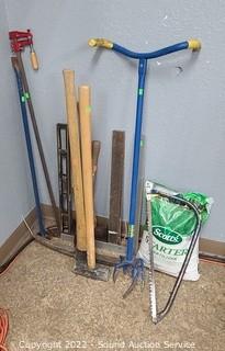 Lot #0302: Assorted Lawn & Garden Tools, Fertilizer, Squares