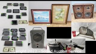 353 Lots including: Microfiber Power Reclining Sofa, Vtg. Oak Wash Station w/Pitcher & Basin, Thomas Kinkade "Summer Gate" A/P Canvas Print, Curio Cabinets, Hutch, Living Room Table Sets, Unique Signed Muller's Stone & Solid Brass Table, Vtg. Fisher Cabinet Stereo System, Kenmore 80 Series Clothes Dryer, Steel Organizer Rack w/35 Plastic Bins, Keller Solid Maple 2pc Hutch, 4 MCM Vinyl Seat Chairs, DVD/Blu-ray Movies, Fine Gold & Silver Jewelry, Vtg. Record Albums, Tools Hardware, Cookware, Table & Service Ware, Personal Hygiene Production, Blankets, Sheet Sets, Various Literature, Bose Wave Radio, Assorted Sewing Patterns/Kits/Fabric/Supplies, Holiday Decor, 1950's Casco "Starlet" Vanity Makeup Mirror, Home Improvement & More!!!