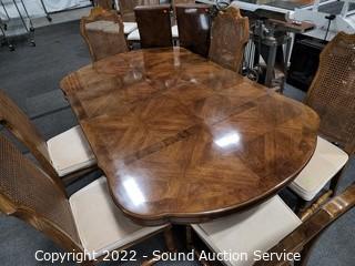 Lot #0004: Dining Table w/10 Cane Back Chairs