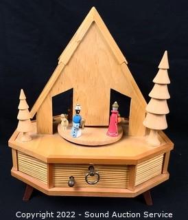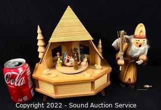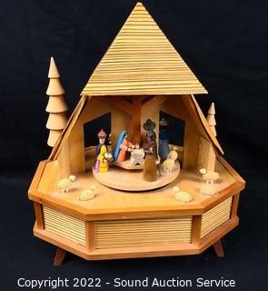 Lot #0244: Handcrafted Wood Nativity Music Box & Figure