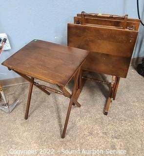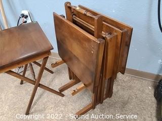 Lot #0303: Set of 4 Wood Folding TV Tray's w/Stand
