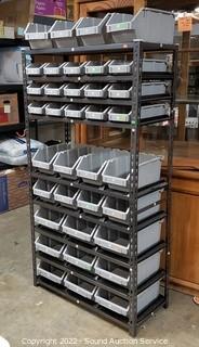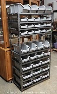 Lot #0039: Steel Organizer Rack w/35 Plastic Bins