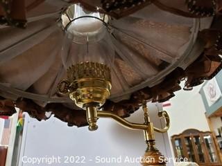 Lot Details: Some wear to the finish. Nice shade with glass chimney. 58" H x 17" W x 28" D.