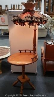 Lot #0035: Vtg. Wood Side Table Floor Lamp