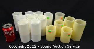 Lot Details: All work. Batteries not included. 4" to 6" H x 3" Dia. 6 are wax, 9 are plastic.