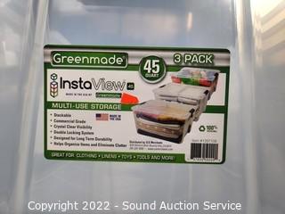 Lot #0267: 3 Greenmade 45qt Clear Plastic Totes w/Lids