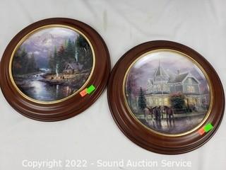 Lot Details: "Wish You Were Here by Thomas Kinkade" Series. By Bradford Exchange. One frame is cracked. Approx. 11" Dia.
