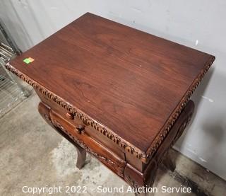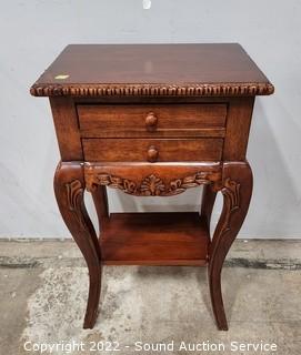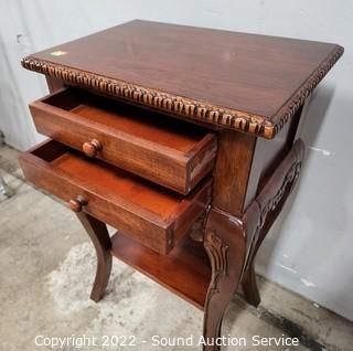 Lot #0059: Cherry 2-Drawer Carved Accent Side Table