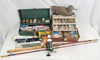 Lot #0196: Fishing Rod/Reel, Various Tackle, Tackle Boxes