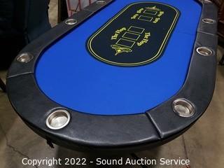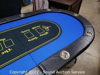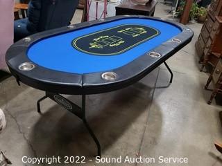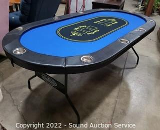 Lot Details: Felt top padded edge with cup holders. 84" x 42" table top. Don't see any issues.